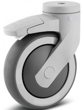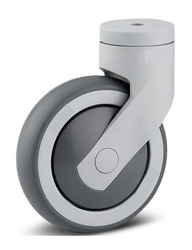 Roulette NYLON diamètre 125 mm pivotante à oeil caoutchouc gris - 80 Kg