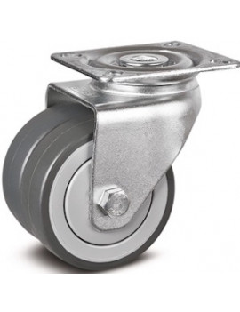 Roulette diamètre 50 mm jumelée pivotante à oeil Caoutchouc Thermoplastique gris - 60 Kg