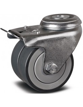 Roulette jumelée à oeil pivotante à frein diamètre 75 mm caoutchouc gris - 80 Kg