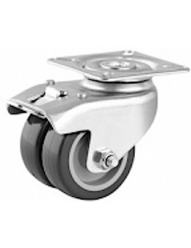 Roulette diamètre 50 mm jumelée pivotante frein Caoutchouc gris - 60 Kg