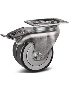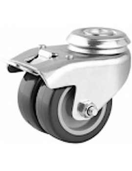 Roulette diamètre 50 mm jumelée pivotante frein à oeil Caoutchouc Thermoplastique gris - 60 Kg