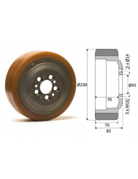 Roue motrice 230 x 82 - 5 trous PU75FO (...