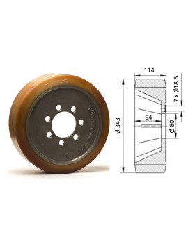 Roue motrice 343 x 114 - 7 trous de 80 VUFO ( JUNGHEINRICH )