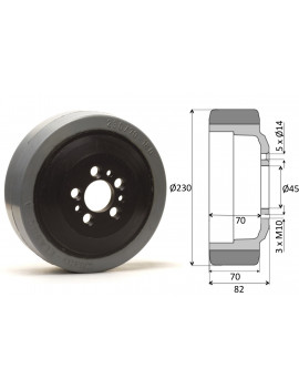 Roue motrice 230 x 70- 5 trous PU75FO ( JUNGHEINRICH )