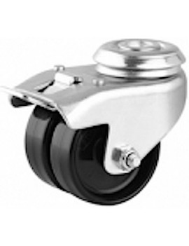 Roulette diamètre 50 mm jumelée pivotante à frein Polypropylène noir - 60 Kg