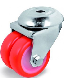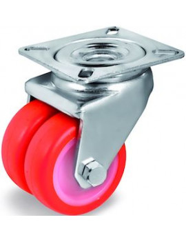 Roulette diamètre 50 mm jumelée pivotante Polyuréthane Thermoplastique rouge - 140 Kg