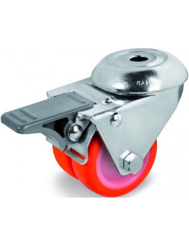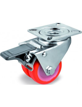 Roulette diamètre 50 mm jumelée pivotante à frein Polyuréthane Thermoplastique rouge - 140 Kg
