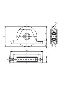 Roue à gorge ronde diamètre 80 x 25 pour rail rond de Ø20 avec monture - 200 Kg