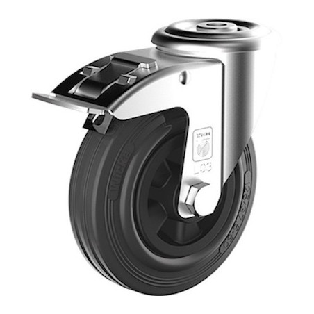 Roulette diamètre 160 mm pivotante à frein Oeil caoutchouc noir - 135 Kg