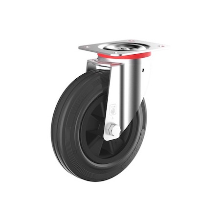 Roulette diamètre 250 mm pivotante caoutchouc noir - 295 Kg