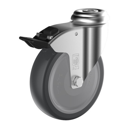 Roulette diamètre 125 mm pivotante à Oeil 12 mm Caoutchouc Thermoplastique GRIS - 100 Kg