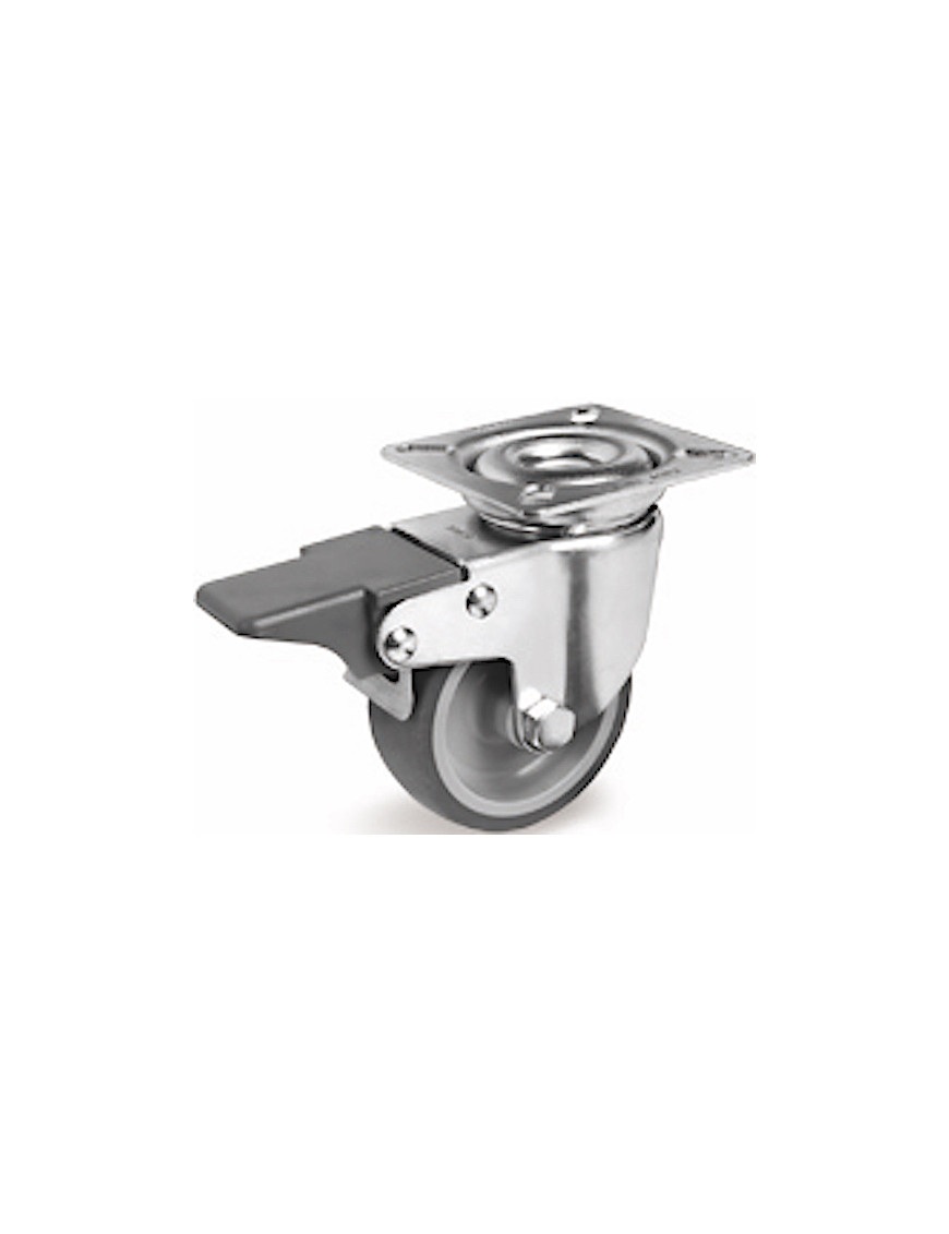 Roulette diamètre 75 mm pivotante à frein Caoutchouc Thermoplastique GRIS - 60 Kg