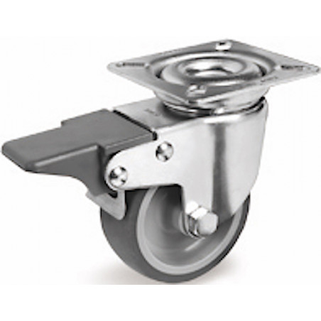 Roulette diamètre 100 mm pivotante à frein Caoutchouc Thermoplastique GRIS - 90 Kg