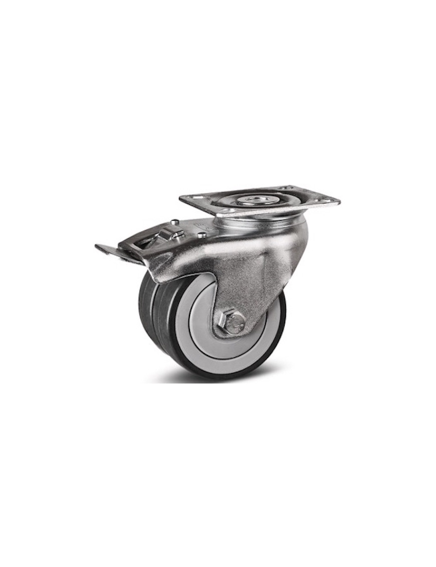 Roulette diamètre 75 mm jumelée pivotante frein Caoutchouc gris roulements à billes - 80 Kg