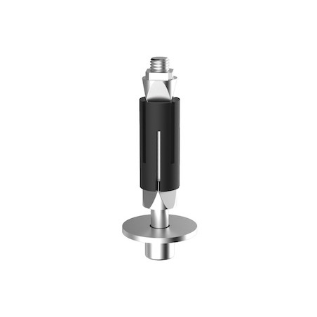 Composé d’une vis, de deux éléments coniques et d’une pièce en plastique expansible. Le vissage du boulon entraîne l’écartement des coins de la douille qui sont pressés contre la paroi intérieure du tube ce qui permet l’immobilisation en rotation de la douille par rapport à la roulette et rend un desserrage impossible.