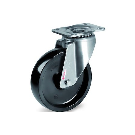 Roulette INOX diamètre 80 mm pivotante Résine Phénolique NOIR - 150 Kg