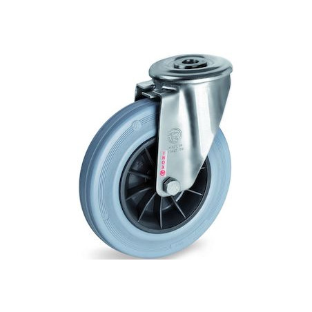 Roulette INOX diamètre 80 mm pivotante à Oeil caoutchouc gris - 50 Kg