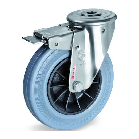 Roulette INOX diamètre 80 mm pivotante à Oeil caoutchouc gris - 50 Kg