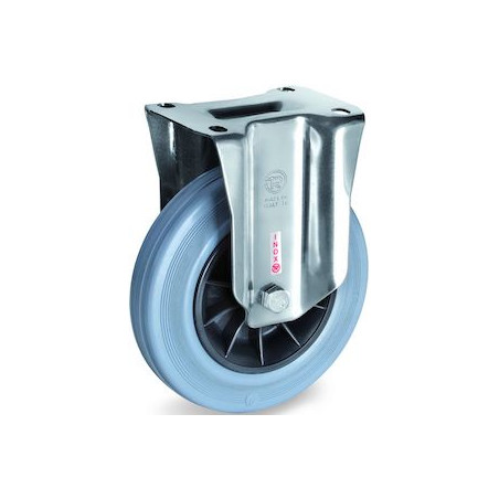 Roulette INOX diamètre 100 mm fixe caoutchouc gris - 80 Kg