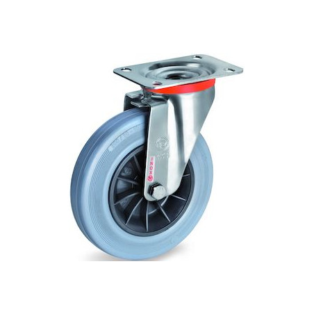 Roulette INOX diamètre 100 mm pivotante caoutchouc gris - 80 Kg