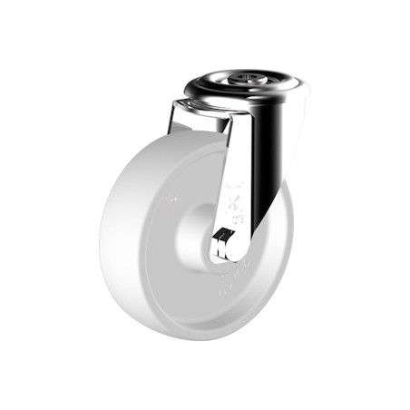 Roulette INOX diamètre 125 mm pivotante à Oeil polyamide blanc - 200 Kg