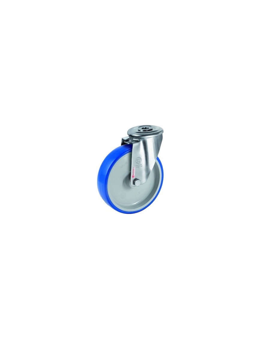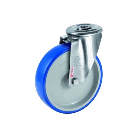 Roulette INOX diamètre 100 mm pivotante à Oeil polyuréthane BLEU-SOFT® - 120 Kg