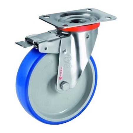 Roulette INOX diamètre 80 mm pivotante à frein BLEU-SOFT® - 75 Kg