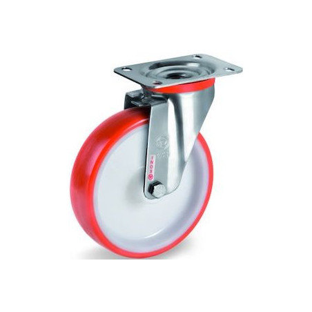Roulette INOX diamètre 80 mm pivotante Polyuréthane Rouge - 120 Kg