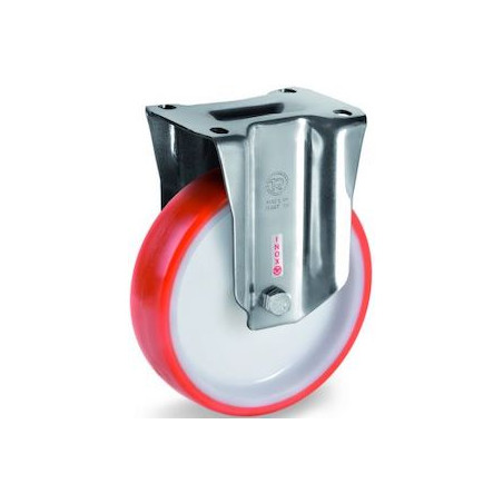 Roulette INOX diamètre 200 mm fixe Polyuréthane Rouge - 300 Kg