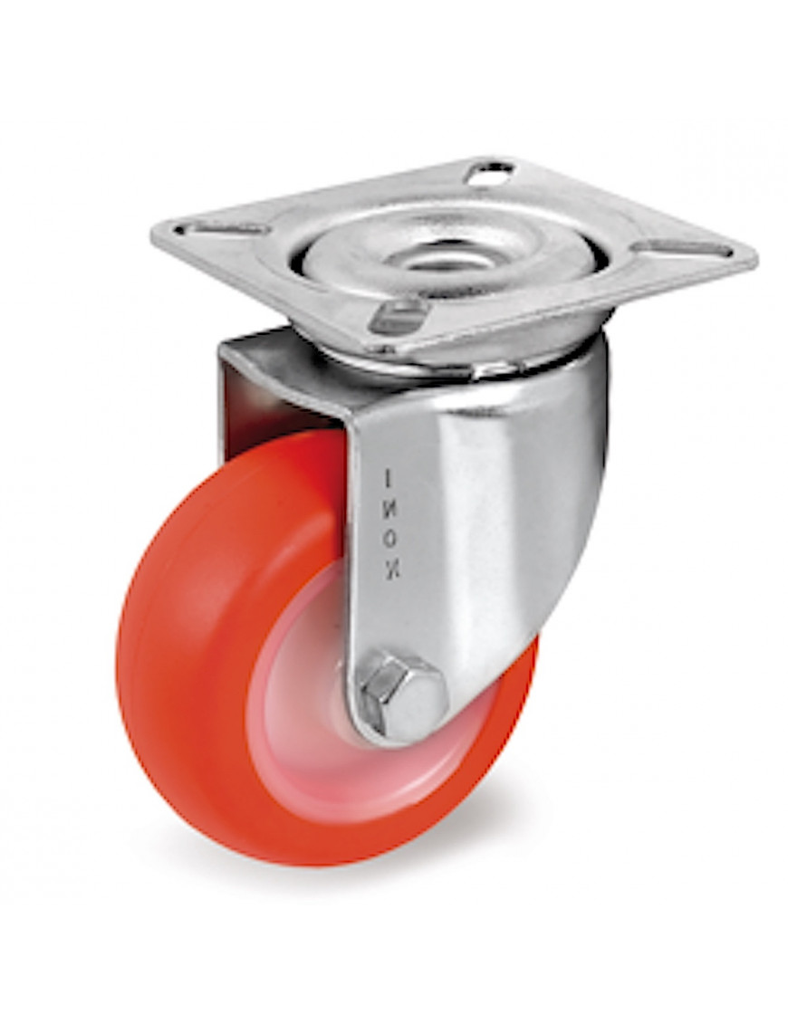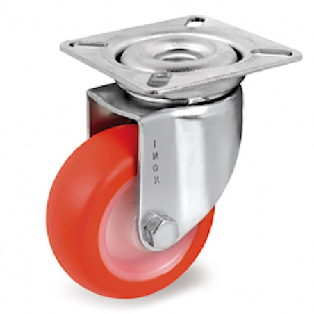 Roulette INOX diamètre 50 mm pivotante Polyuréthane Rouge - 55 Kg