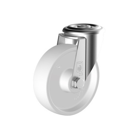 Roulette diamètre 125 mm pivotante à Oeil polyamide blanc - 150 Kg