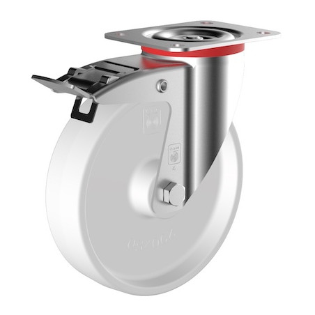Roulette diamètre 125 mm pivotante à frein polyamide blanc - 200 Kg