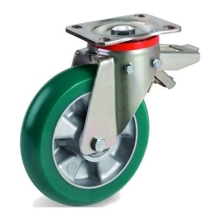Roulette diamètre 125 mm pivotante à frein ERGO-SOFT® vert - 350Kg GRANDE PLATINE