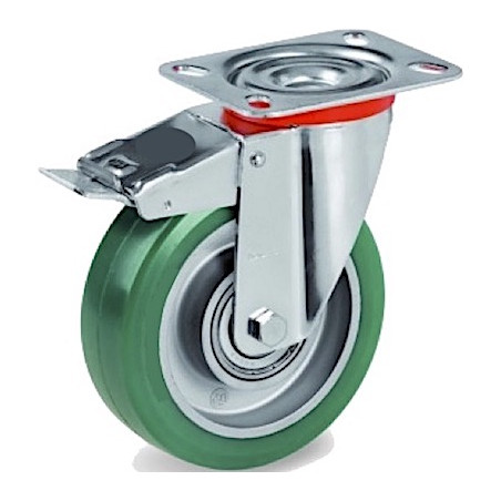 Roulette diamètre 100 mm pivotante à frein ERGO-SOFT® vert - 200Kg