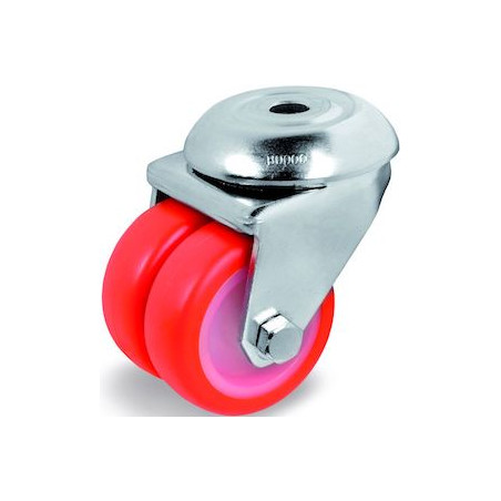 Roulette diamètre 50 mm jumelée pivotante à oeil Polyuréthane Thermoplastique rouge - 140 Kg