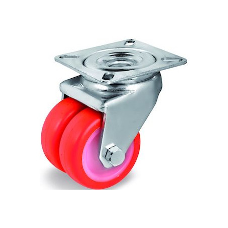 Roulette diamètre 50 mm jumelée pivotante Polyuréthane Thermoplastique rouge - 140 Kg
