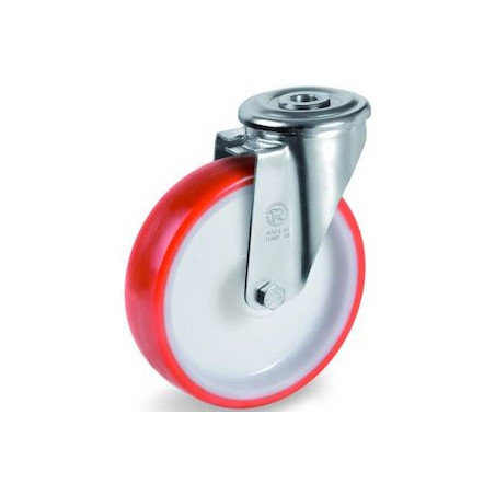 Roulette diamètre 80 mm pivotante à Oeil polyuréthane rouge - 120 Kg