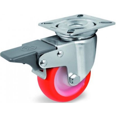 Roulette diamètre 50 mm pivotante à frein polyuréthane rouge - 55 Kg