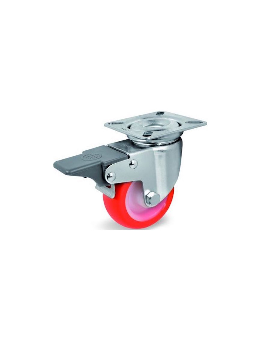 Roulette diamètre 40 mm pivotante à frein polyuréthane rouge - 40 Kg