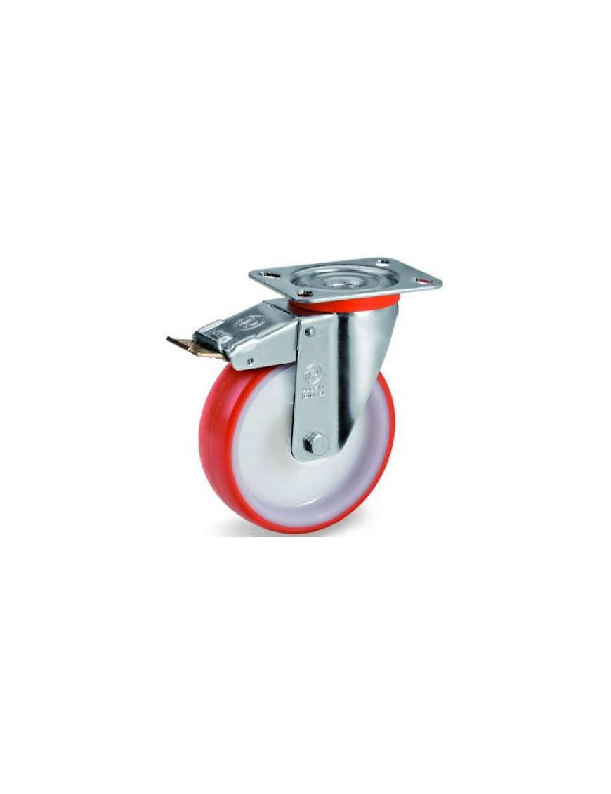 Roulette diamètre 80 mm pivotante frein roulement à billes polyuréthane rouge - 130 Kg