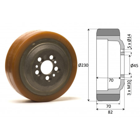 Roue motrice 230 x 70 - 5 trous VUFO ( JUNGHEINRICH )