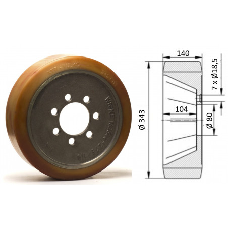 Roue motrice 343 x 140 - 7 trous VUFO ( JUNGHEINRICH )