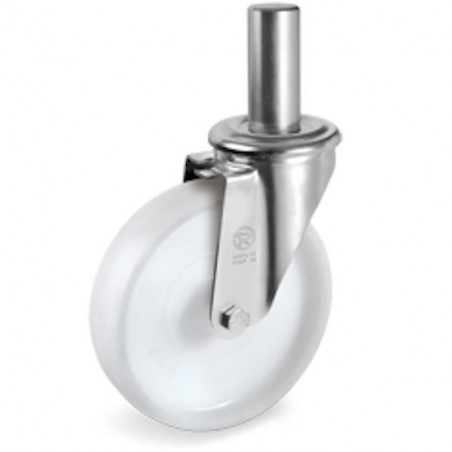 Roulette diamètre 125 mm pivotante Polyamide blanc tige lisse 22 x 47 mm
